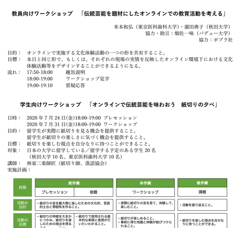 また、2020年に行なった「日本語学習者を対象にした紙切りワークショップ」に関する情報も追加しました。